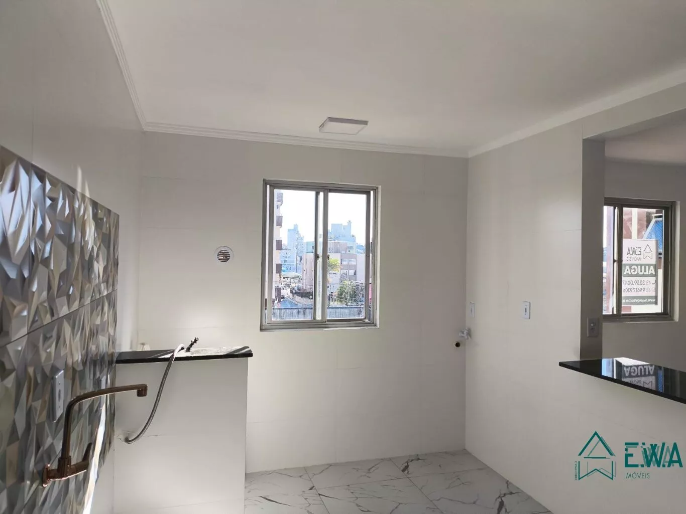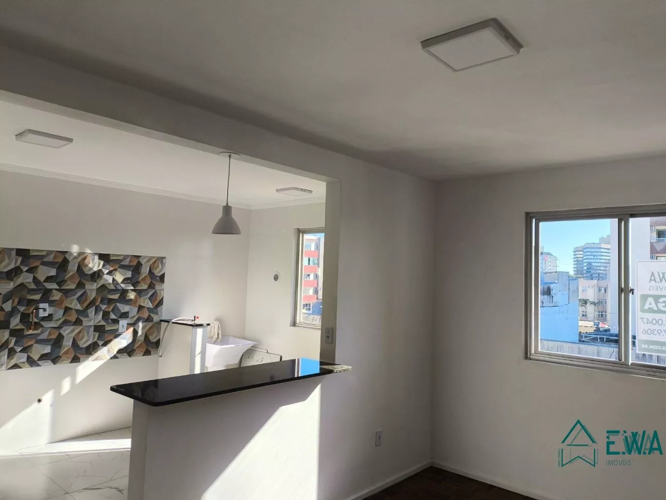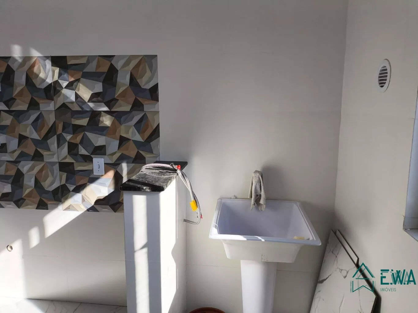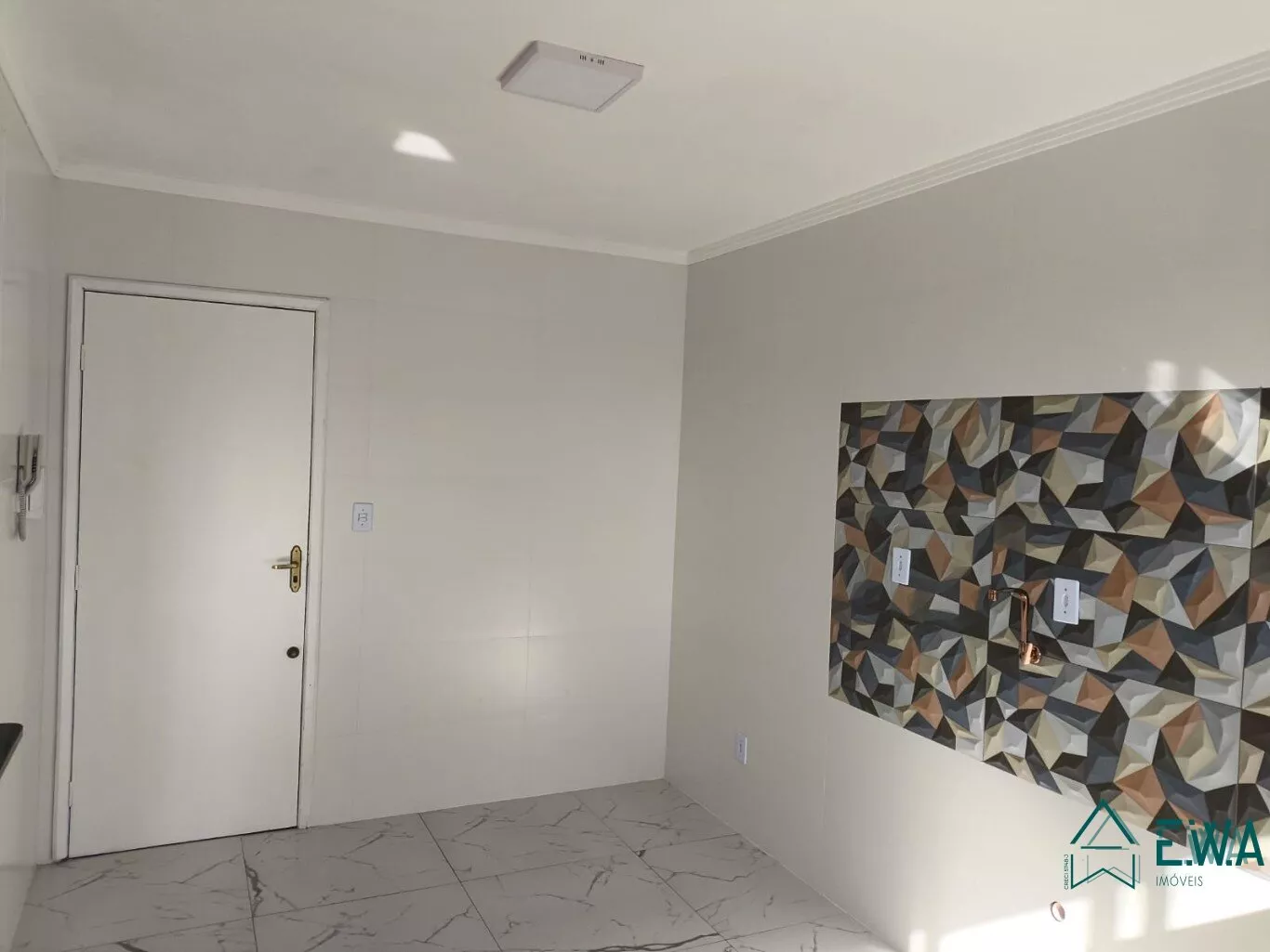 Apto com 2 quartos, sala, cozinha, banheiro, área de serviço e garagem.