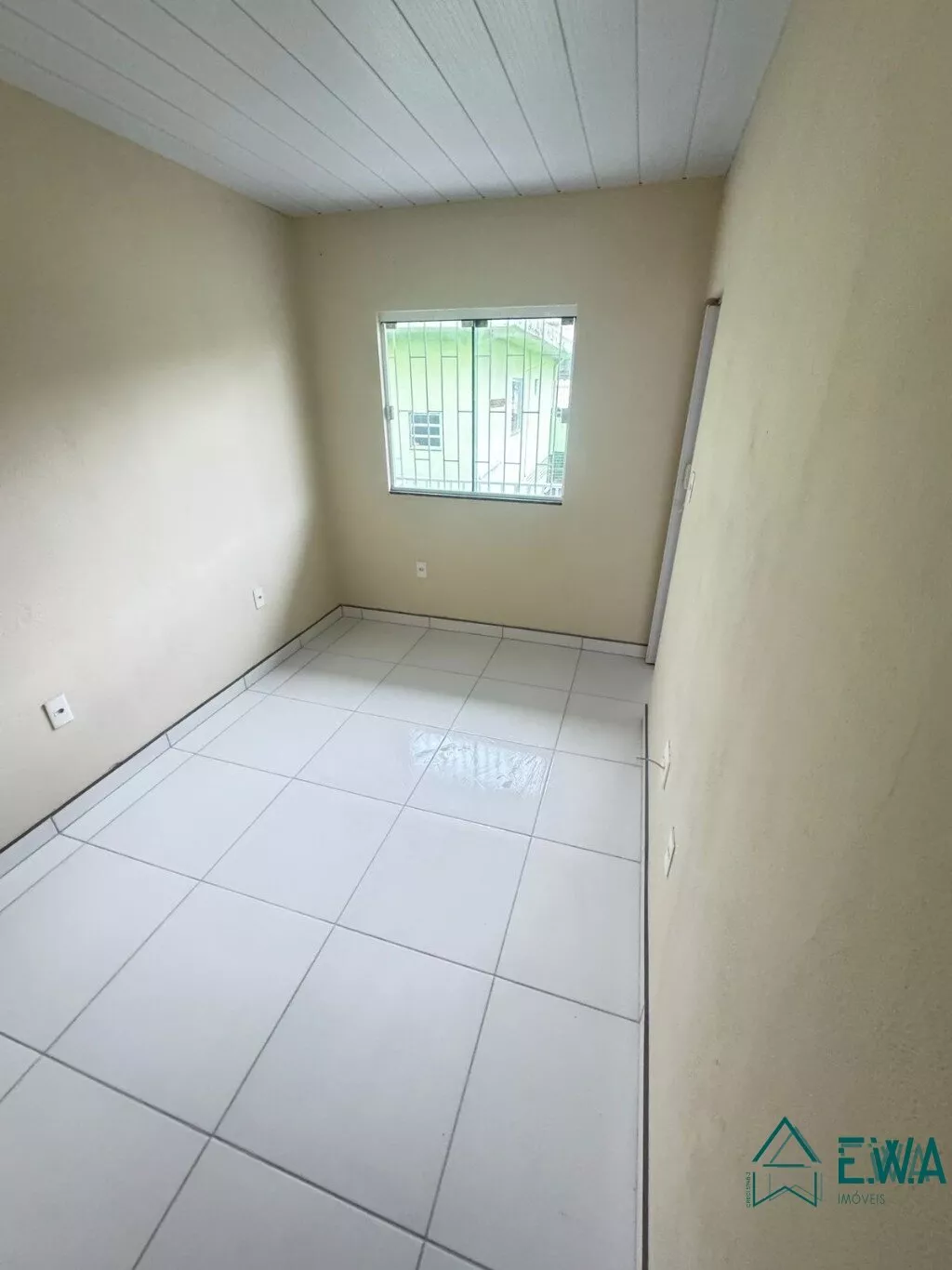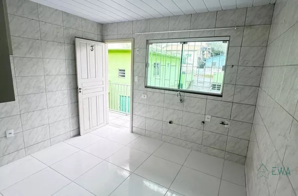Apto com 2 quartos, sala e cozinha, banheiro, área de serviço e estacionamento descoberto.