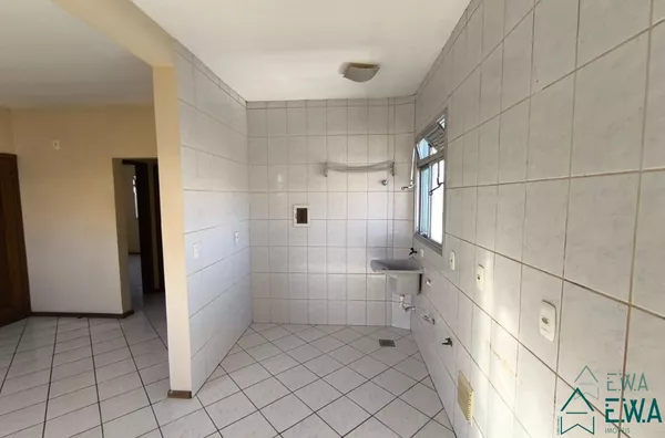 Apto de fundos com 2 quartos, sala, cozinha, banheiro, área de serviço e vaga de garagem.