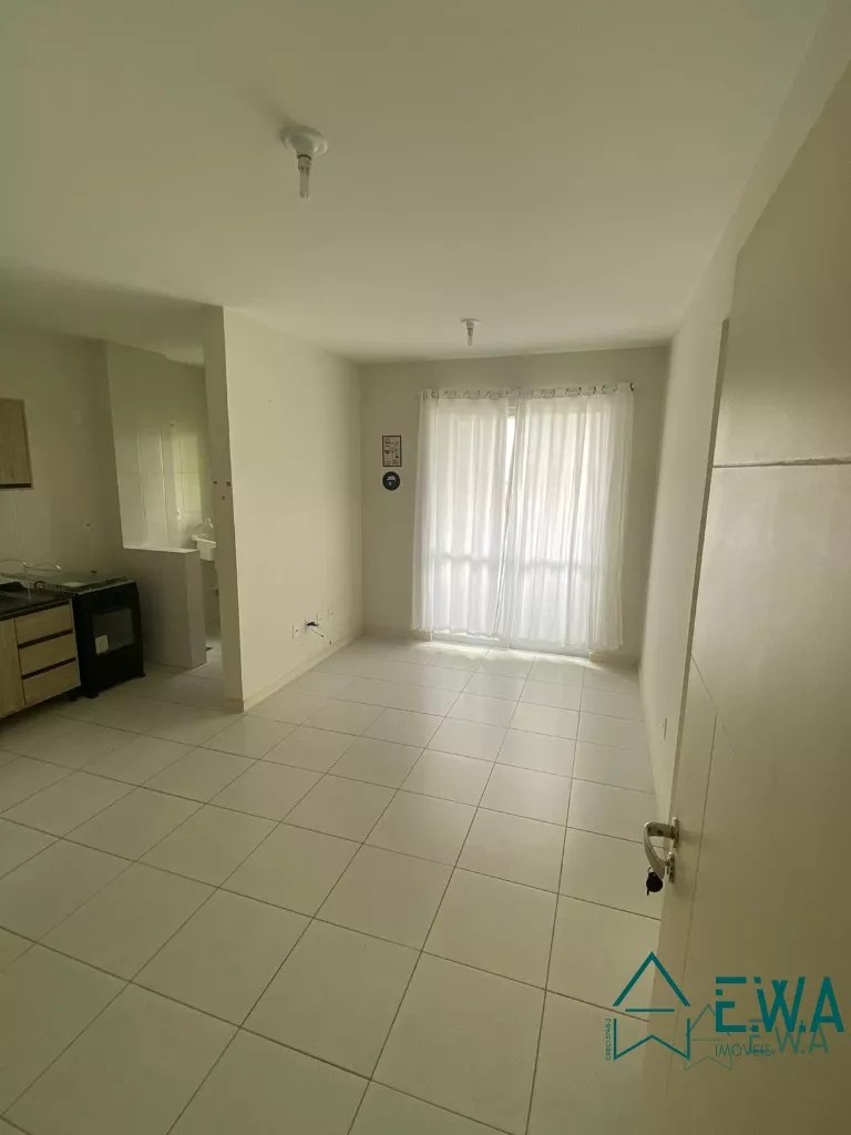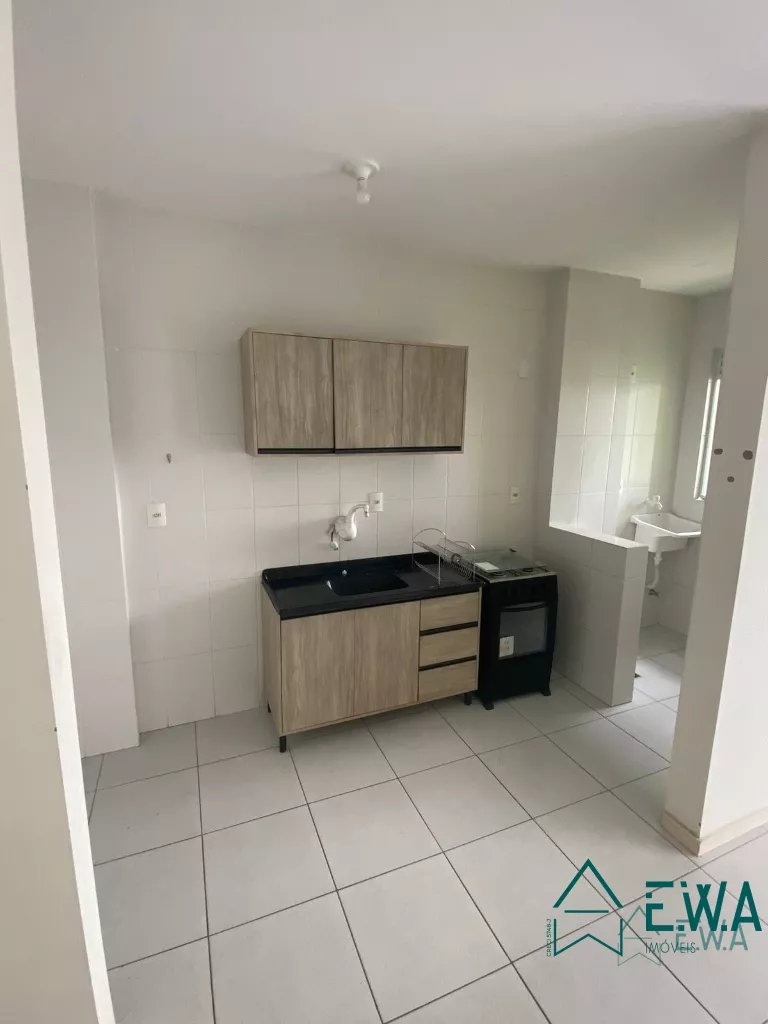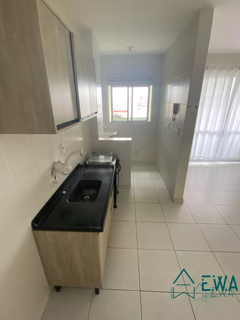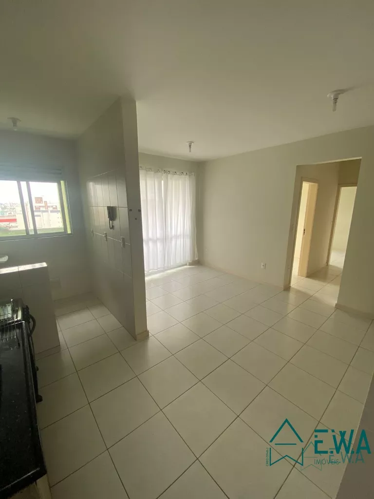 Apartamento 2 dormitórios, sala com sacada com churrasqueira, cozinha com armários, banheiro, área de serviço e garagem.