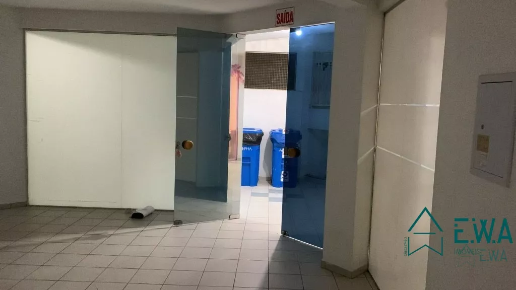 Sala comercial terrea (dentro de uma galeria), com banheiro e portas de vidro.