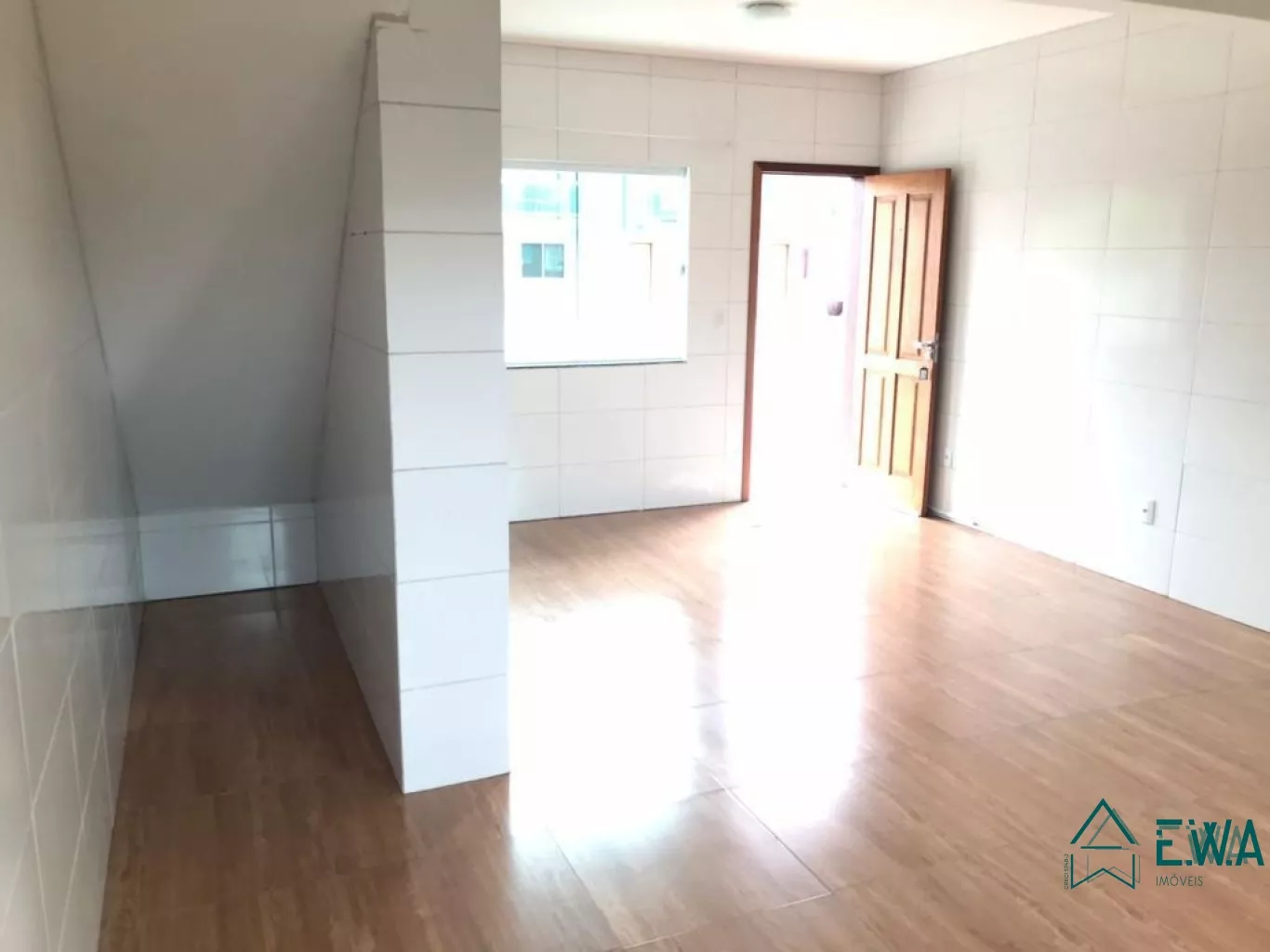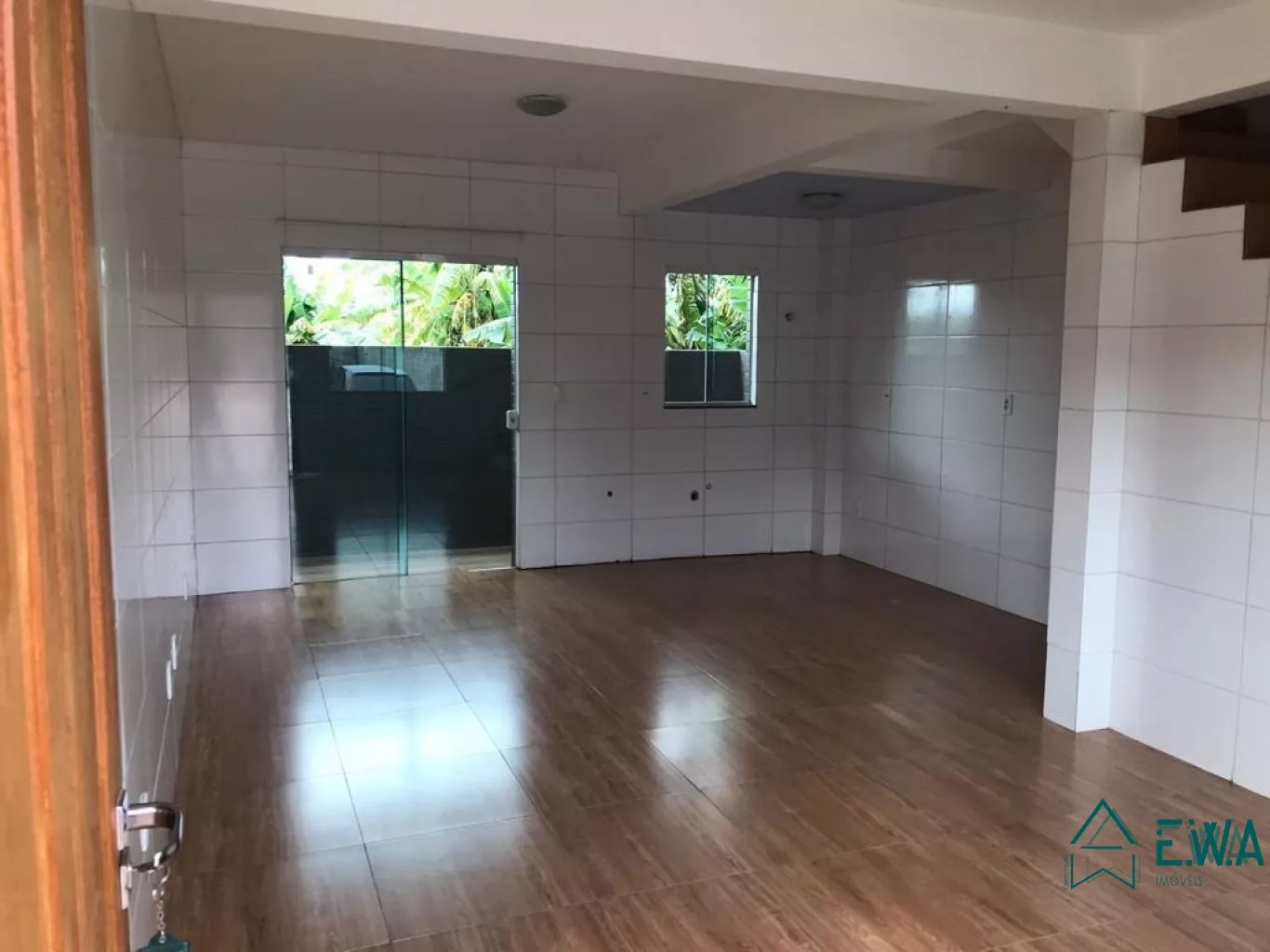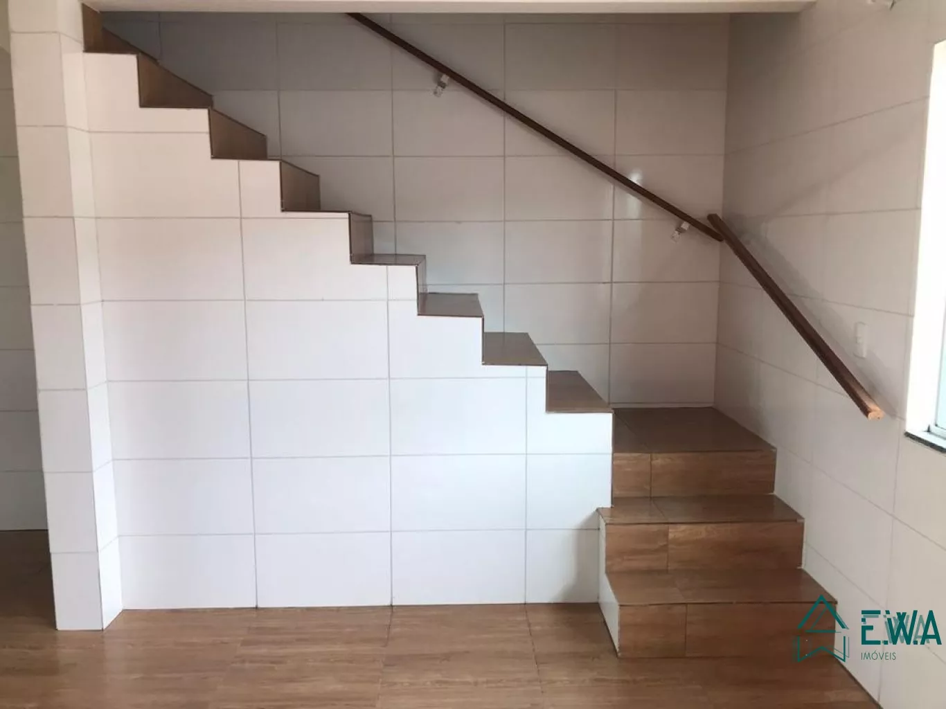 Sobrado com 2 dormitórios sendo um com sacada, sala e cozinha conjugados, banheiro, área de serviço e estacionamento.