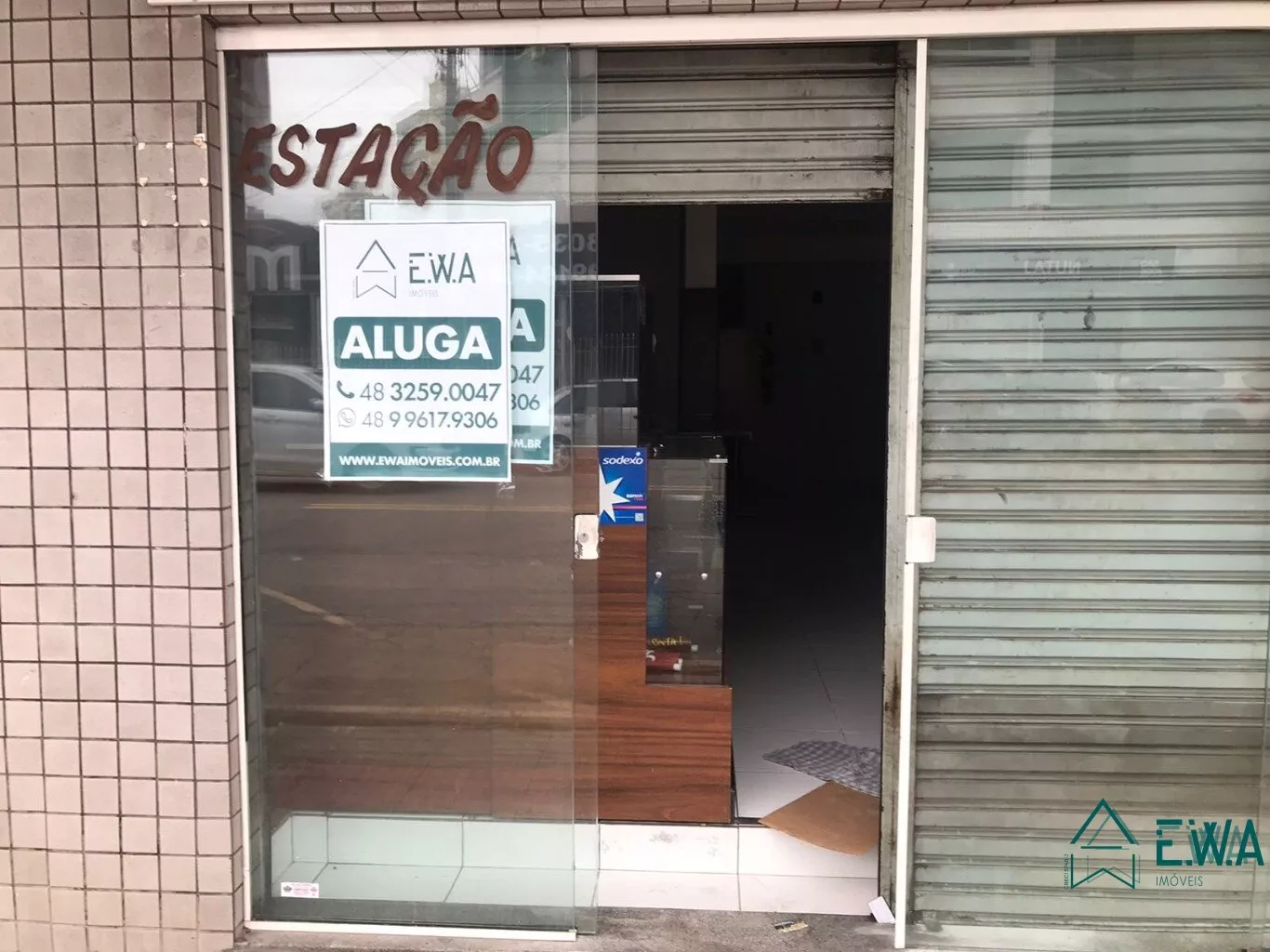Loja terrea com aproximadamente 40,00m2, com 1 banheiro, cozinha, porta de esteira e vidro.