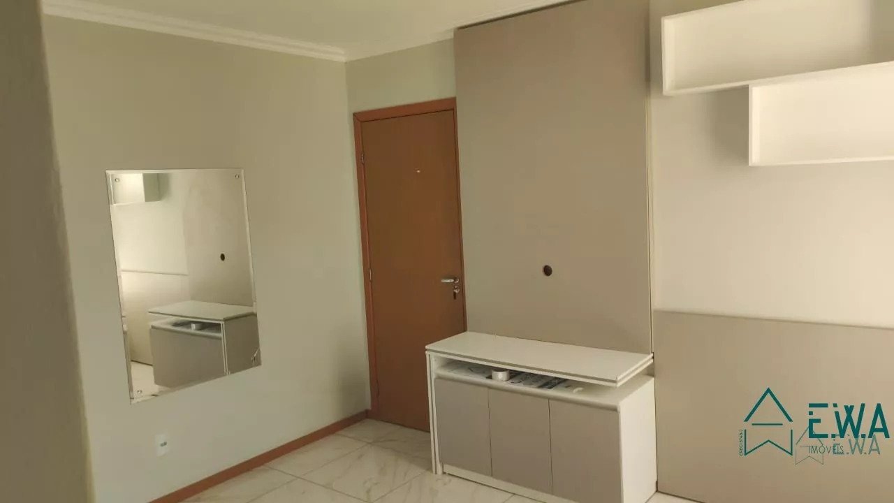 Apartamento com 2 Quartos com armarios e ar condicionados, sala com balcao, cozinha com armarios e fogao cooktop, banheiro, área de serviço, estacionamento interno descoberto, portaria, salao de festas.