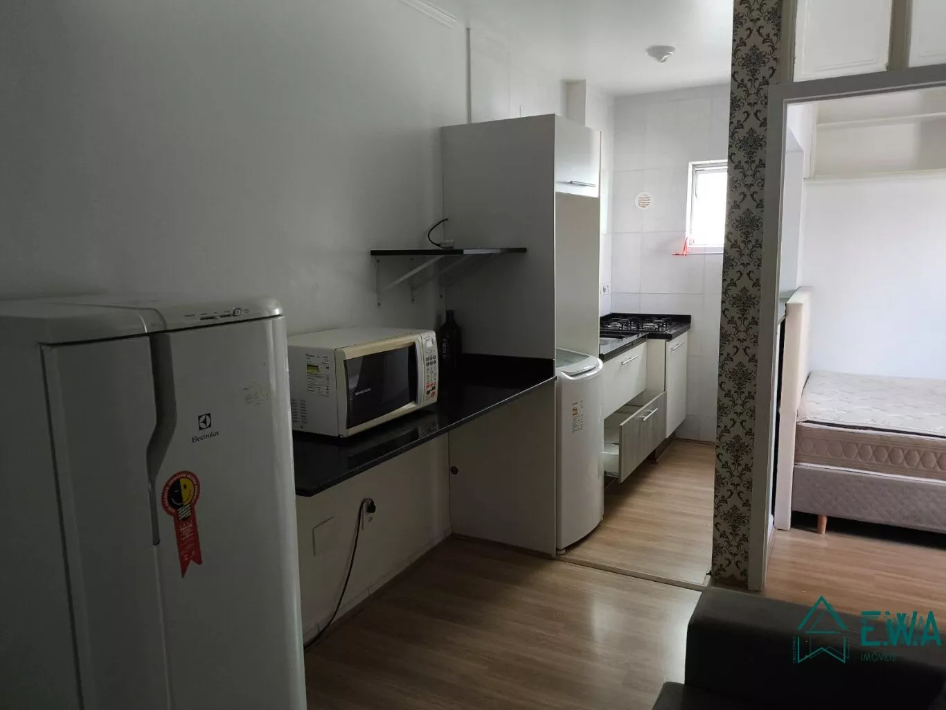 KITINET TOTALMENTE MOBILIADA, Sofa para 2 lugares, pia e armario, geladeira, fogao, maquina de lavar, micro ondas, quarto com cama casal e armario, banheiro.