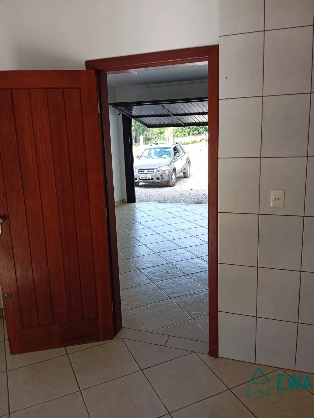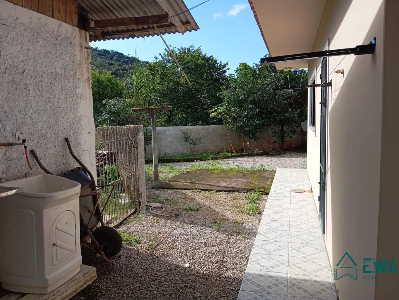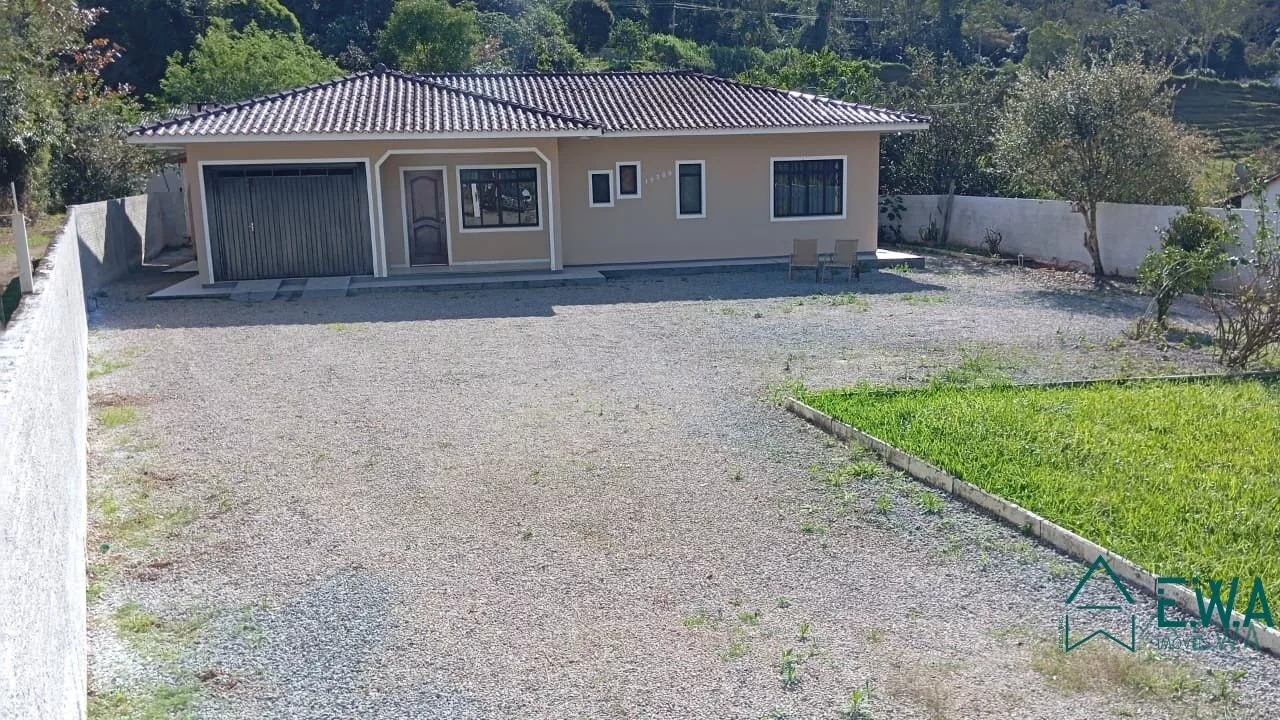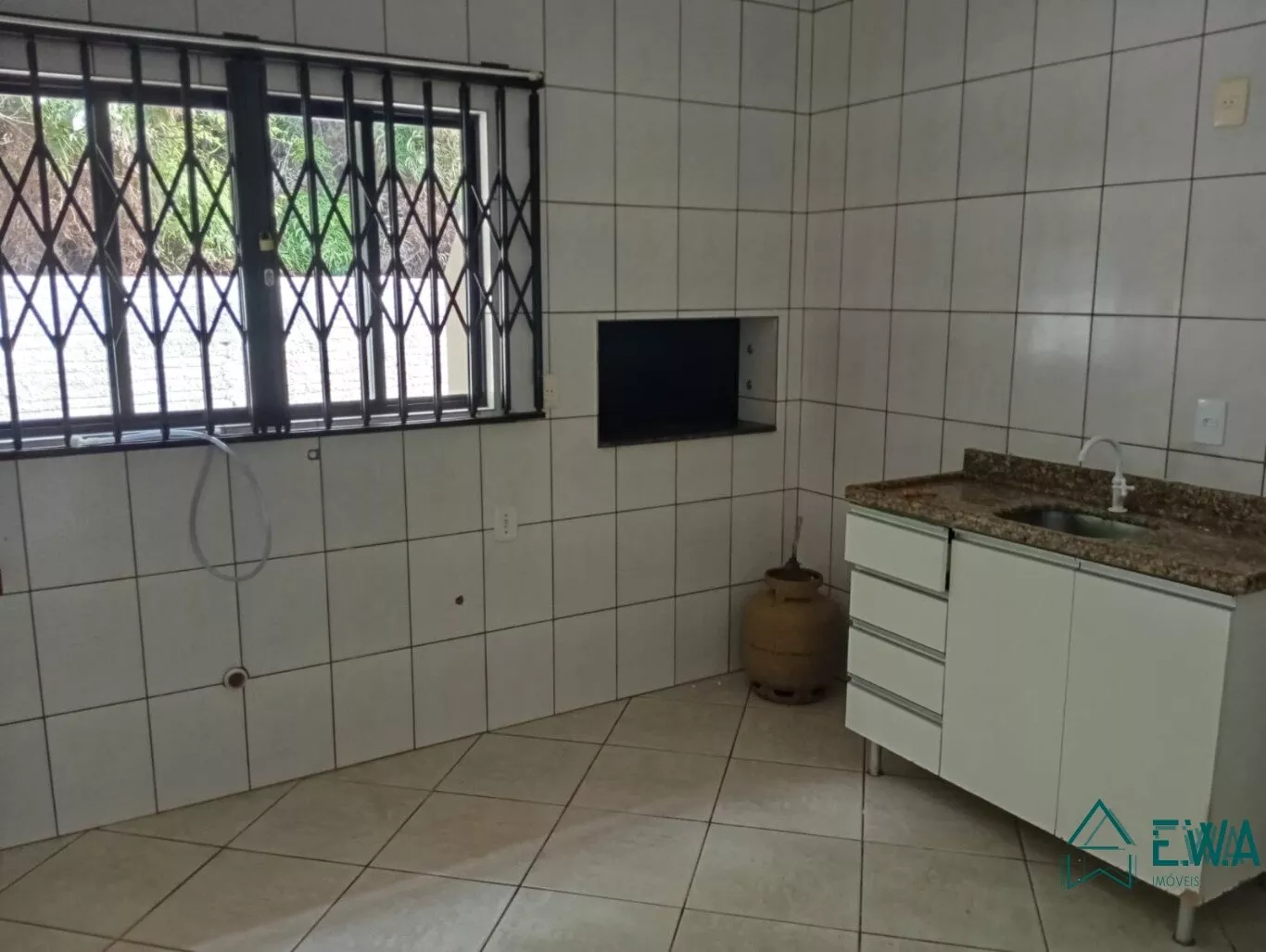 Ampla casa de Alvenaria com 3 dormitorios, sendo 1 suite com closed, sala, cozinha com armários, banheiro, área de churrasqueira com banheiro, garagem fechada, quintal com parte com grama e locais pra cultivo de horta.