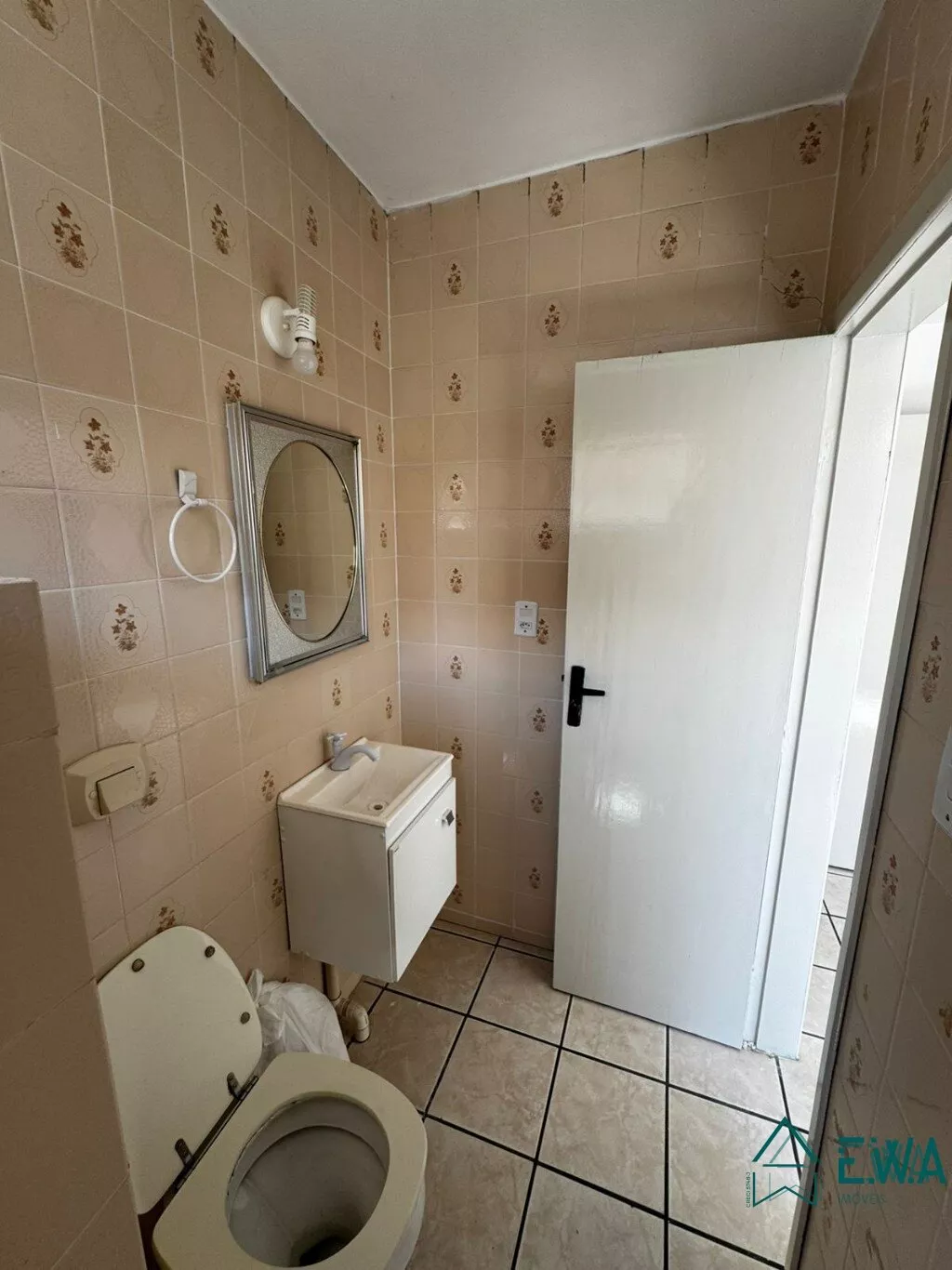 Apartamento terreo com 1 quarto com armário, sala, cozinha com armários e banheiro.