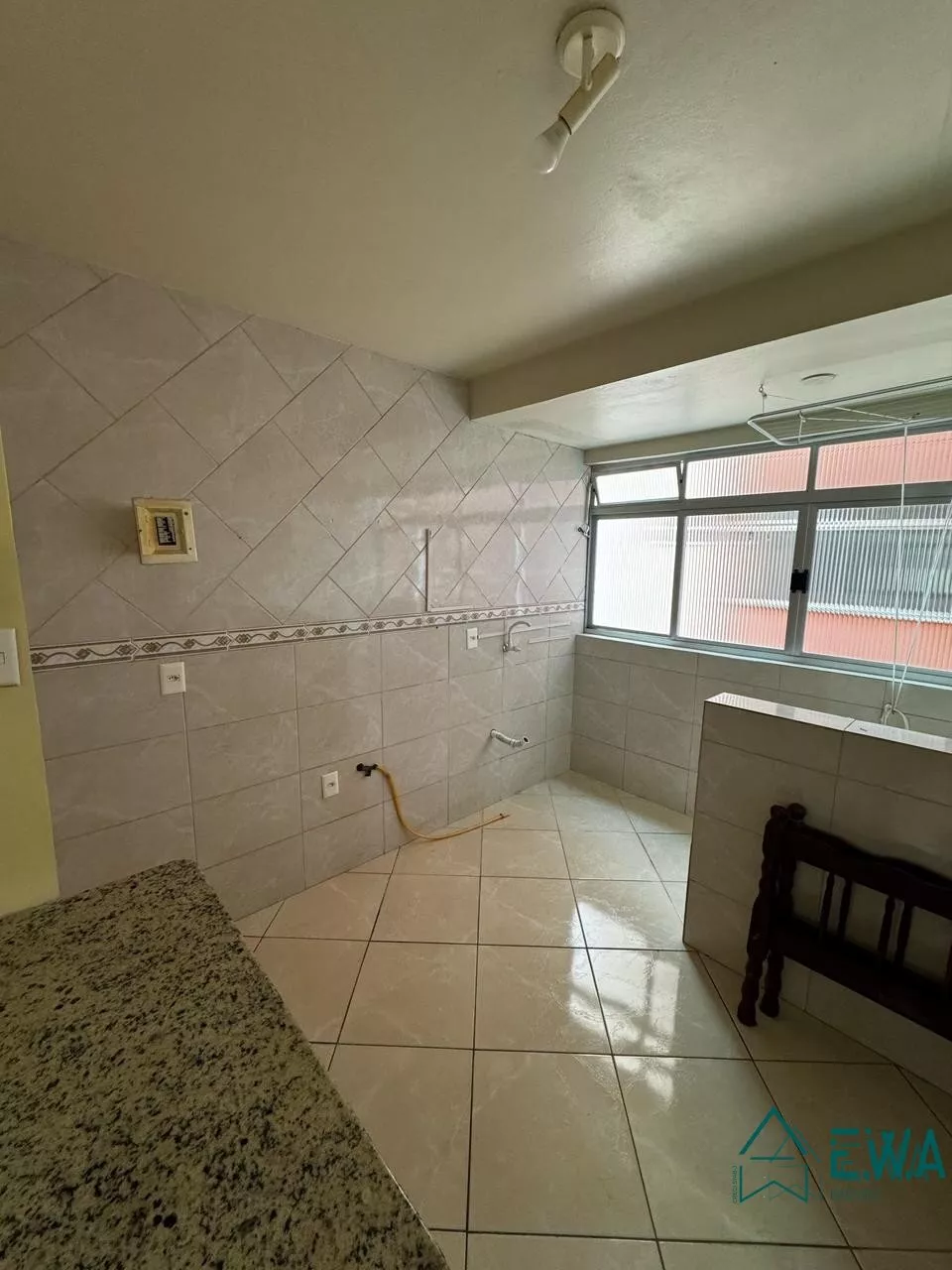 Apto com 2 quartos, sala, cozinha, banheiro, área de serviço e garagem compartilhada.