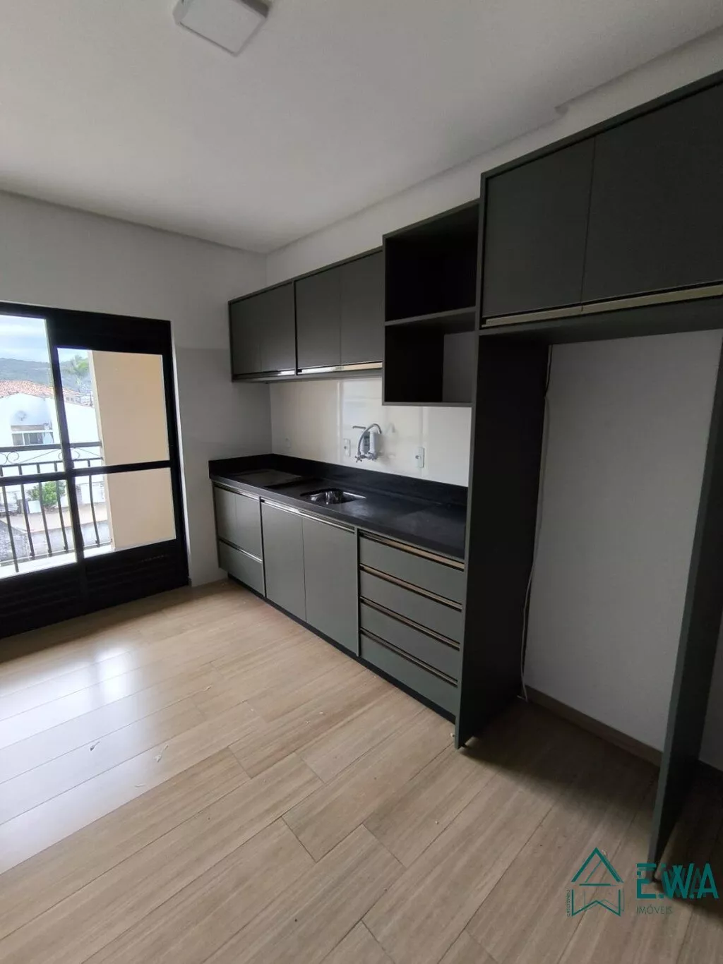 Apto novo com 1 quarto, sala e cozinha conjulgados, sacada e area de serviço, banheiro, garagem, elevador, gás central, home box.