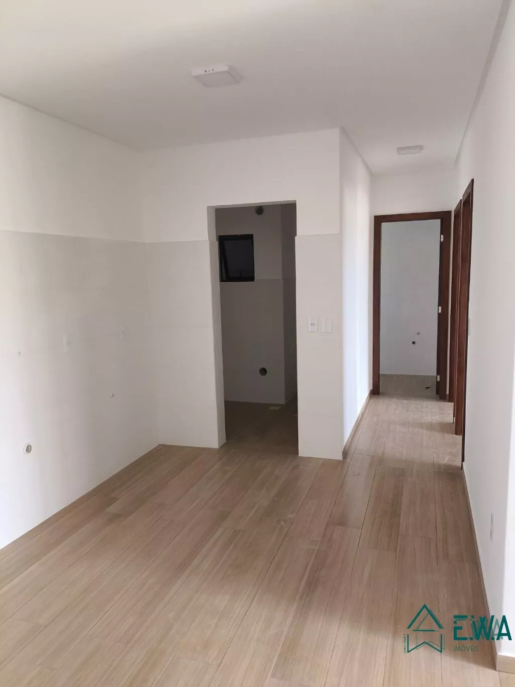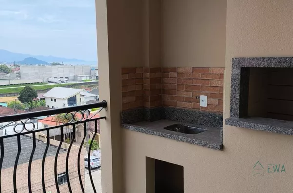 Apto novo com 2 quartos, sala e cozinha conjulgados com sacada e churrasqueira, banheiro, área de serviço e garagem.