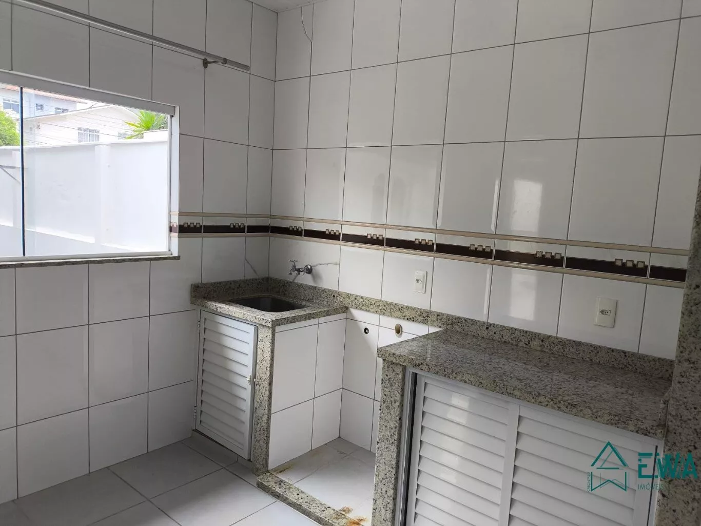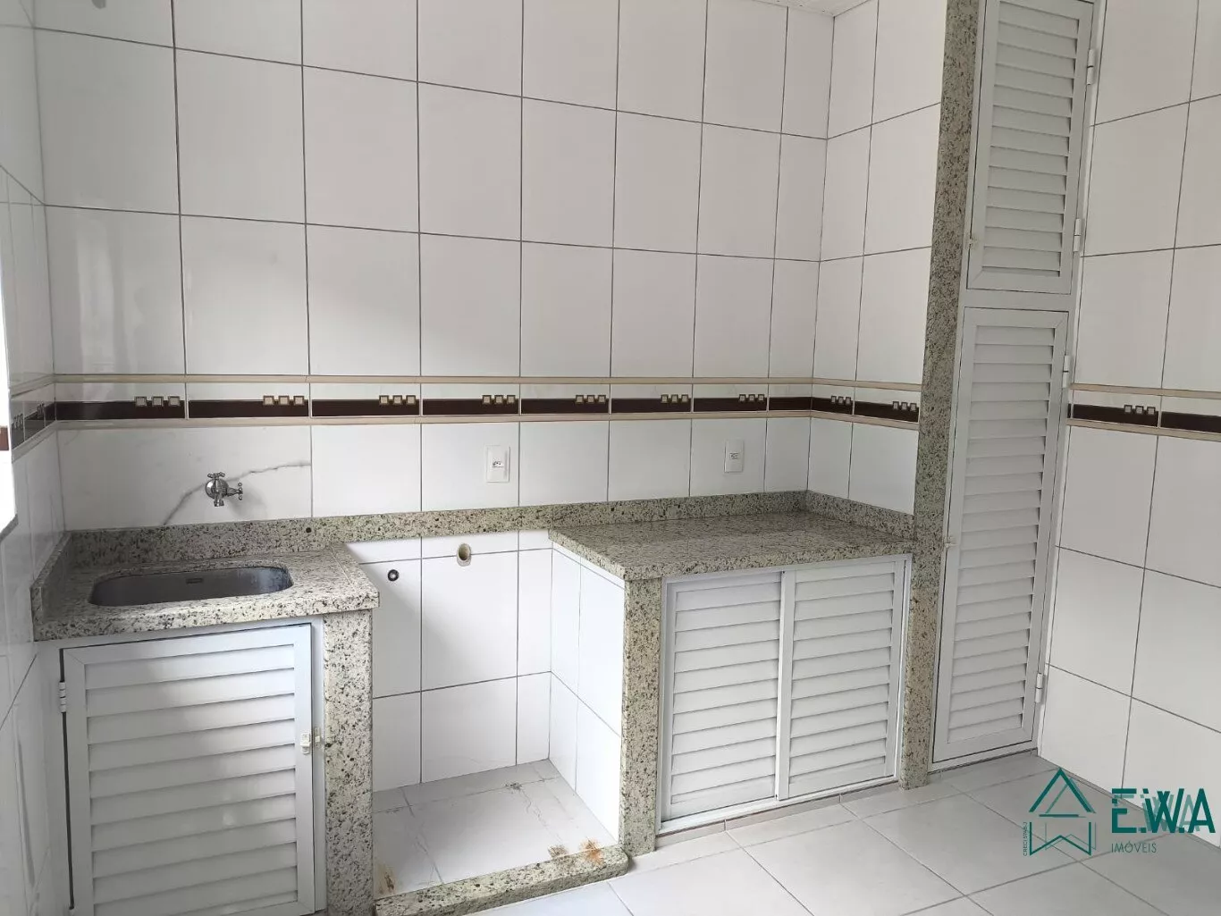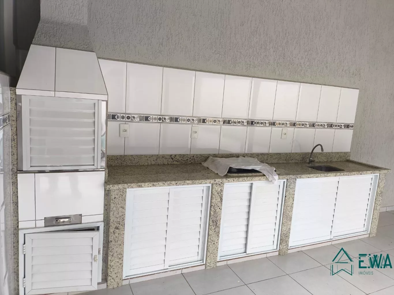 Edicula com área de servico, banheiro, churrasqueira, fogao, pia.