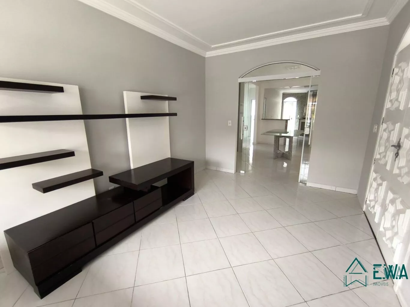 Casa residencial com 3 quartos, sendo com 1 suite com closed e ar condicionado, 2 quartos com ar condicionado, sala de estar e jantar, cozinha com armários, banheiro social, garagem.