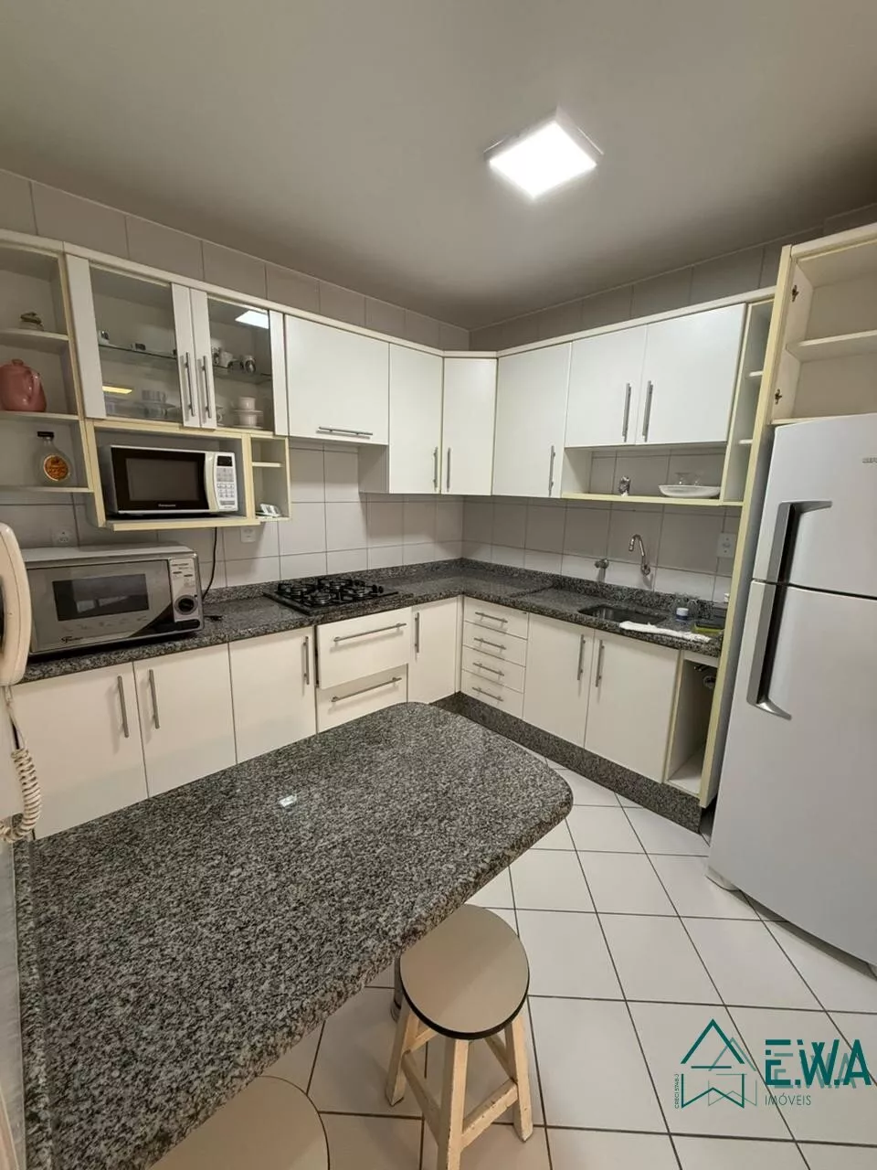 Apto com 3 quartos, sendo 1 suíte com armários, sala com sacada, cozinha com armários, banheiro social, área de servico, garagem, prédio com elevador, piscina.