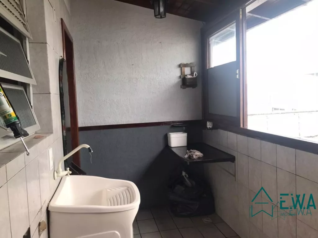 2 quartos, sala, cozinha com armários, banheiro, área de serviço com churrasqueira, garagem, vista para o mar, condominio com portaria.
