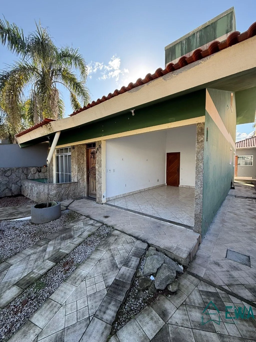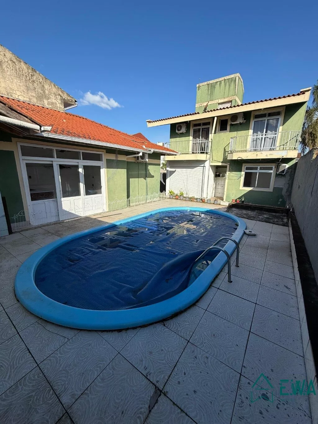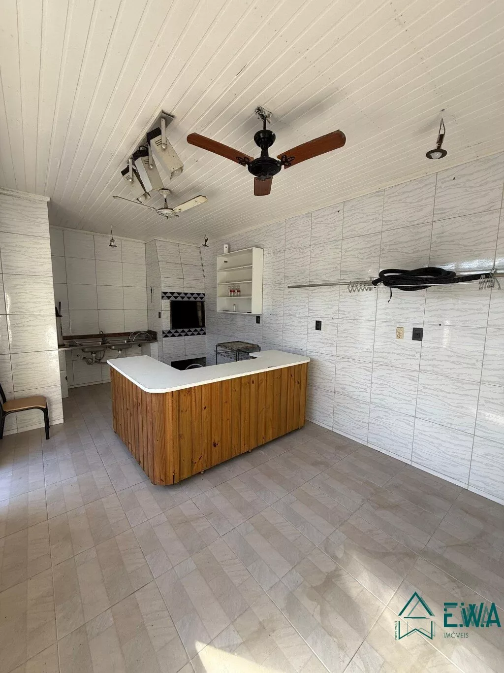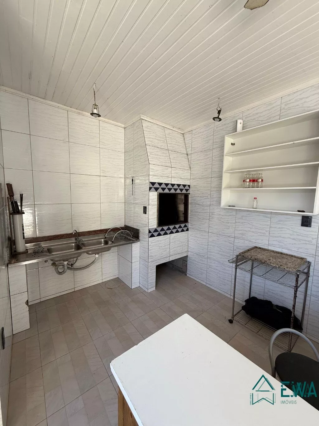 Casa de alvenaria com 3 quartos, sendo 1 suite, sala com lareira, cozinha, banheiro social, área de servico, garagem, edicula com churrasqueira, piscina, quintal.