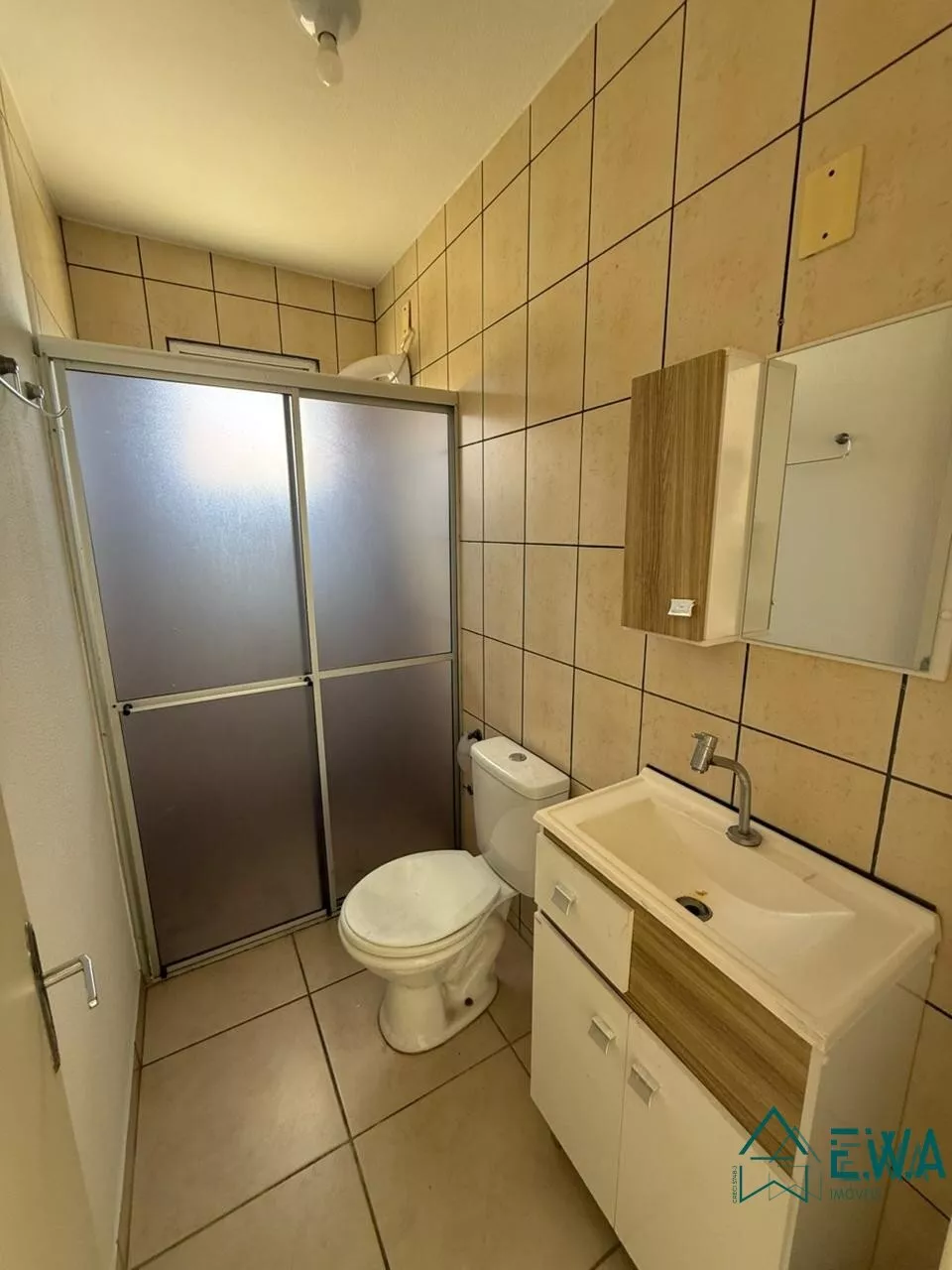 Apto com 2 quartos, sala, cozinha, banheiro, área de servico, estacionamento descoberto.
